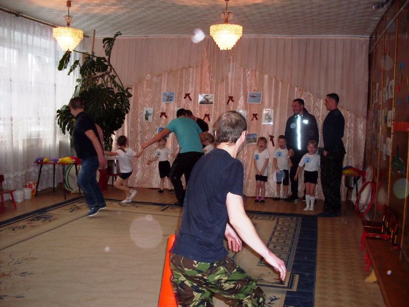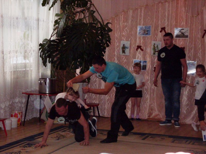 16 февраля прошло развлечение с родителями посвящённое 23 февраля. Активными участниками стали дети и их папы старшей группы, а мамы были в группе поддержки. Задания для участников проходили в развлекательной форме. Дети и родители разделились на команды: «Летчики» и «Танкисты». Задания для участников проходили в развлекательной форме. Ребята и их папы продемонстрировали свою силу и ловкость в конкурсах: «Снайпер», «Переправа», «Накорми бойца», «Сержант и молодой боец», «Кавалерийцы». Проявили смекалку при составлении письма-загадки. Девочки папам и мальчикам подарили заводной танец, песни и стихи. Развлечение прошло в доброй и весёлой обстановке.