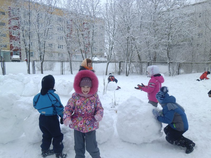 Прогулки в детском саду зимой — не только прекрасное время для развлечений на свежем воздухе, но и замечательный способ оздоровления. На прогулке дети получают возможность проявить большую активность, самостоятельность и инициативу в действиях. Лепка из снега снеговиков, снежных крепостей, да просто поваляться в пушистом снегу большое удовольствие для ребятишек! И зимние прогулки для нас – это радость, веселье, счастье!