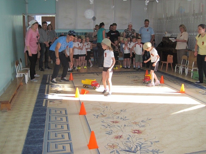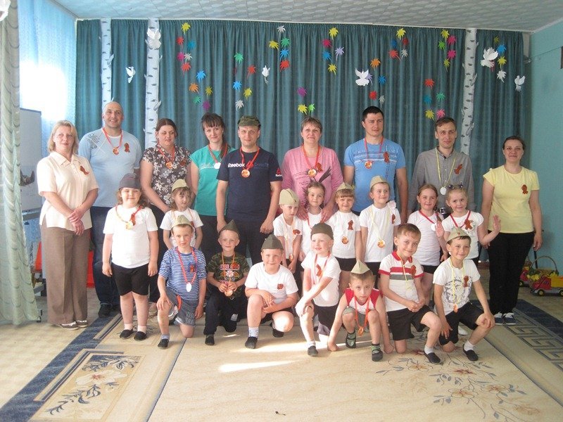 7 мая в целях патриотического воспитания дошкольников, формирования чувства патриотизма в нашем детском саду прошло спортивное мероприятие совместно с родителями, посвященное дню Победы «Мы – наследники Победы». Дети вместе с родителями участвовали в эстафетах «В тылу врага», «Полевая почта», «Военная тревога», «Доставка продовольствия». Девочки спасали «раненых бойцов» - своих пап, а мамы им в этом помогали. На «привале» ребята прочитали стихи о Победе, а завершились соревнования танцем « Праздничный салют».