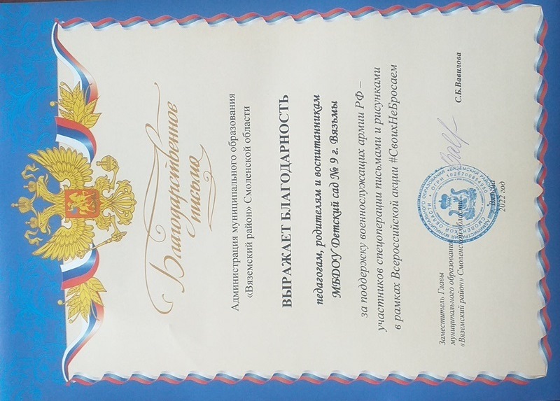 Педагоги и воспитанники рассказали в письмах о себе, своих мечтах, выразили слова благодарности и поддержки тем, кто сегодня, рискуя своей жизнью, обеспечивает мирное будущее нашей страны. Дети выразили пожелания скорейшего завершения военной спецоперации и возвращения всех до единого солдата к своим родным. Все послания уже доставлены адресатам военным спецбортом в места дислокации военнослужащих.