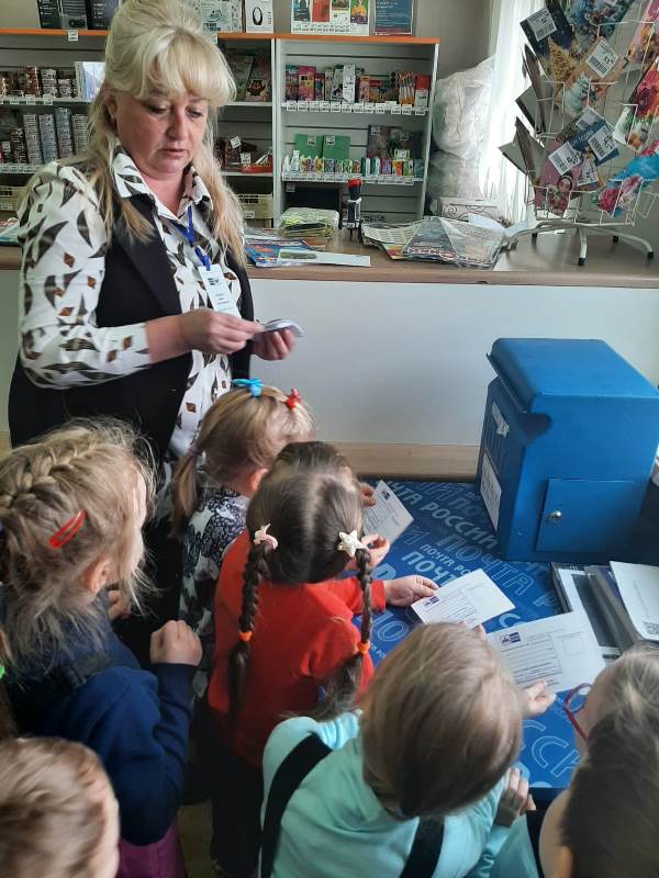 Ребята познакомились с почтовым отделением связи и с основными функциями почты. Узнали, что на почте можно купить газеты, журналы; отправить письма и открытки, телеграммы своим друзьям и родным людям; оплатить разные услуги. Дети узнали, что такое почтовый ящик, зачем в него опускают письма и открытки, узнали, каким образом почта доходит до адресата.