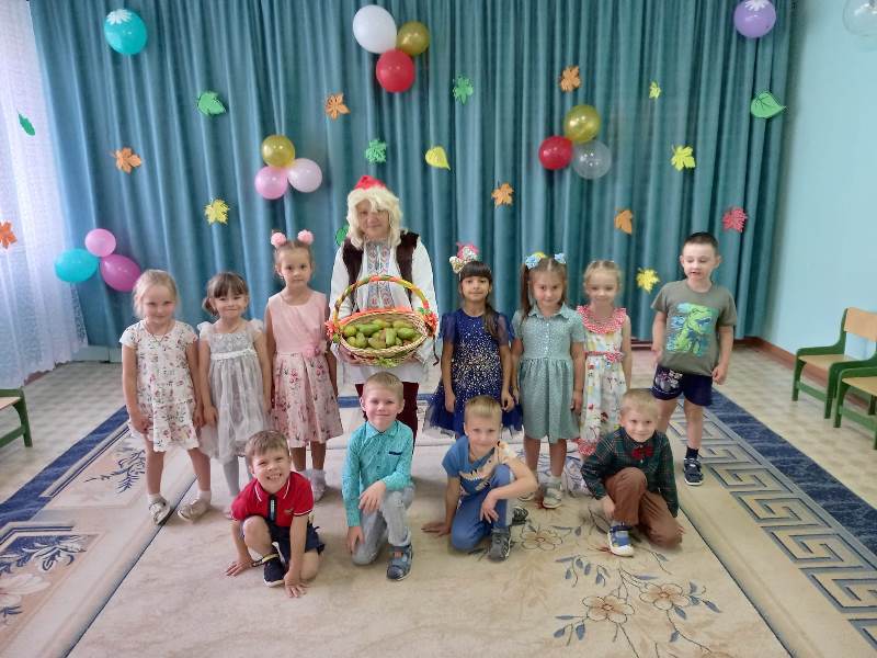 С Днём знаний воспитанников детского сада пришел поздравить гномик Молчун, который ничего не умел. Но ребята научили его петь, танцевать и играть в разные игры и дружить. За это он подарил ребятам корзинку с осенними фруктами.
