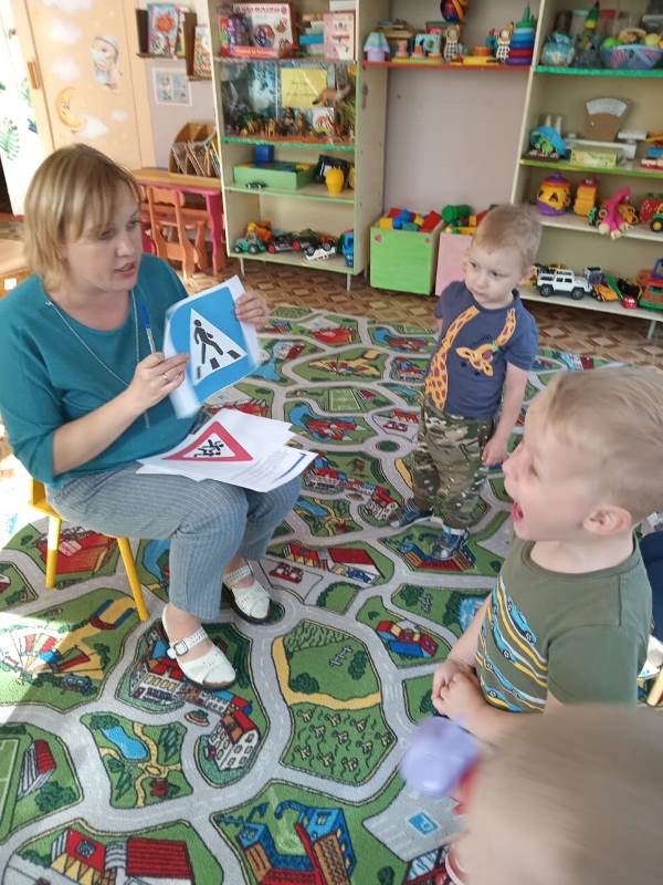 В игровой форме дошкольники закрепили знания о правилах дорожного движения, отгадывали загадки о дорожных знаках, играли в игры «Скажи правильно», «Три сигнала светофора», «Воробышки и автомобиль», отвечали на вопросы в игре «Разрешается – запрещается», расширили свои представления о правилах поведения на улице.