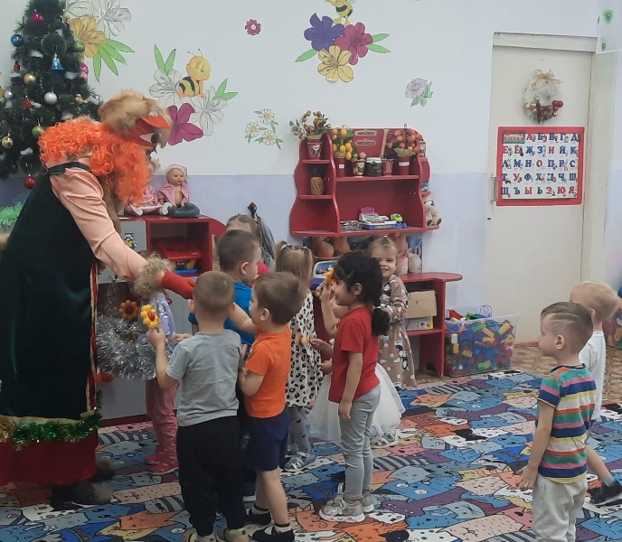 Сначала в гости к малышам заглянула Лисичка-сестричка, чтобы с ними подружиться. Рыжая гостья закружила ребят в танце с погремушками, поиграла в игру, спела песенки.