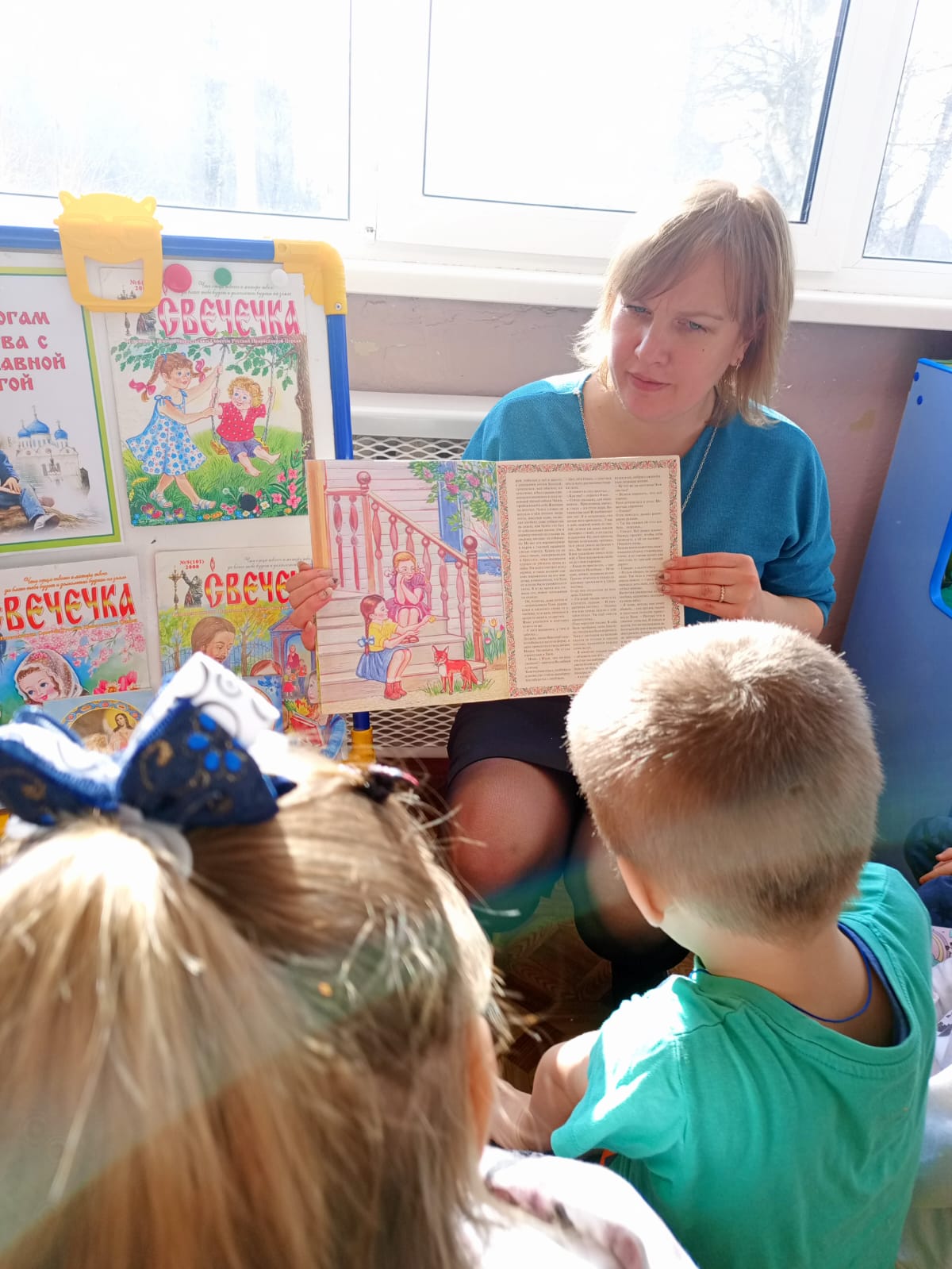 После чего воспитатели прочитали детям истории из этих книг. Ребята увлеченно слушали, рассматривали иллюстрации.