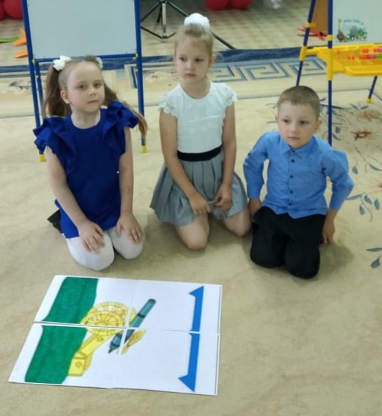 Дети рассмотрели флаг и герб города и узнали историю их возникновения.