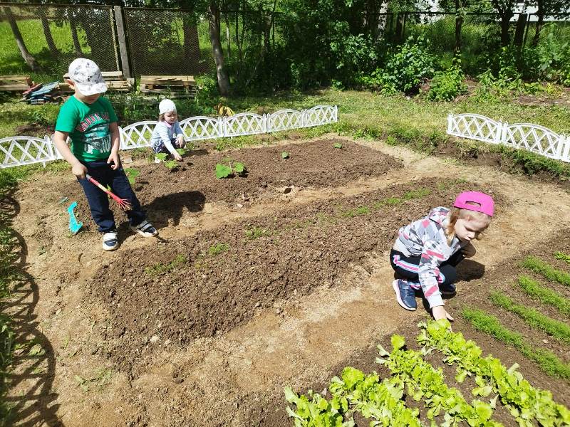 Коллективный труд на огороде приучает детей к ответственности, развивает трудовые навыки и уже к середине лета они могут увидеть плоды своего труда.